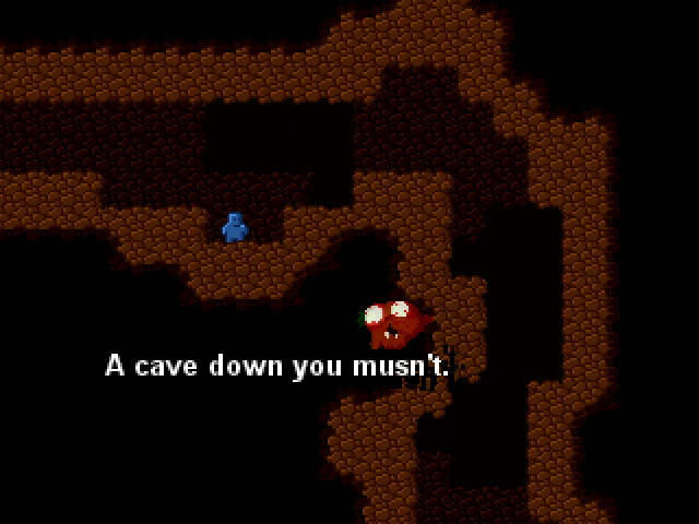 "A cave down you musn't..." Evil says. Does Aramas a cave down? Does the lava kill Aramas? Surely it does. Time and time again.