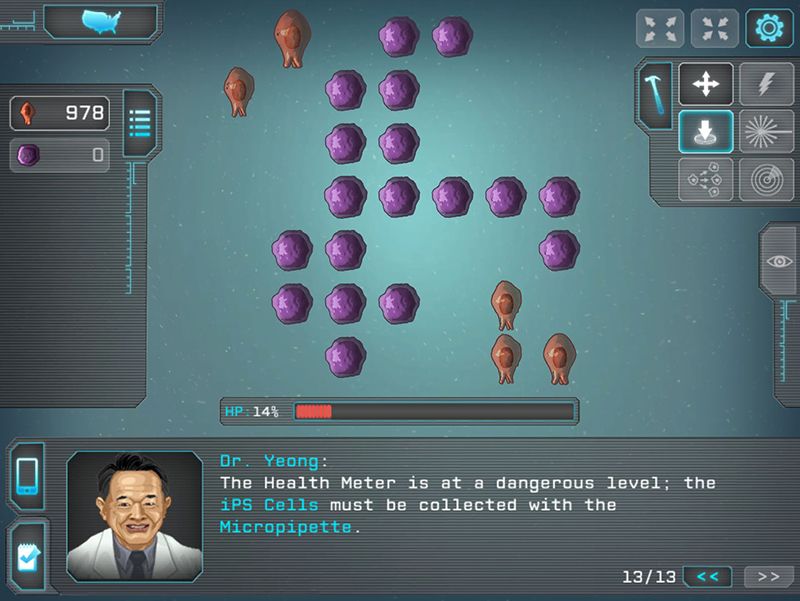 When I was the engineer/designer on the project, it was only a demo that contained 4 different missions that demonstrate the higher process of creating iPS cells and their future potential to re/create tissues and help heal organs.