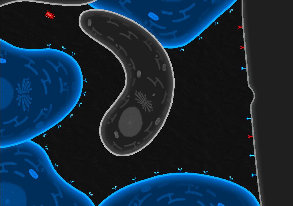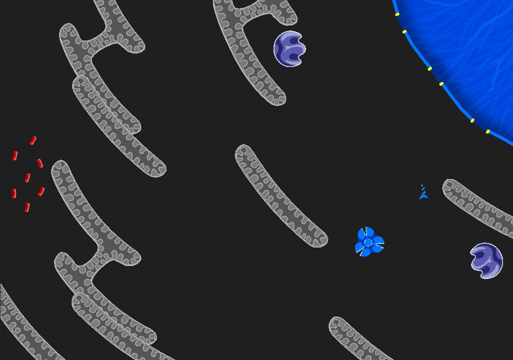 In my humble words, Virulent is an action-strategy game intended to teach Systems Biology to middle school and high school students, specifically in the cycle of viral infection and reproduction.